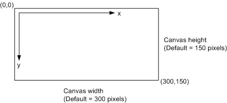 The Context2D API renders the canvas as a coordinate system whose origin (0,0) is at the top left corner, as shown in the figure below. Coordinates increase along the