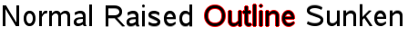 Row { 文本 { font .pointSize: 24 ; text : "Normal" } 文本 { font .pointSize: 24 ; text : "Raised" ; style : 文本 . Raised ; styleColor : "#AAAAAA" } 文本 { font .pointSize: 24 ; text : "Outline" ; style : 文本 . Outline ; styleColor : "red" } 文本 { font .pointSize: 24 ; text : "Sunken" ; style : 文本 . Sunken ; styleColor : "#AAAAAA" } } |