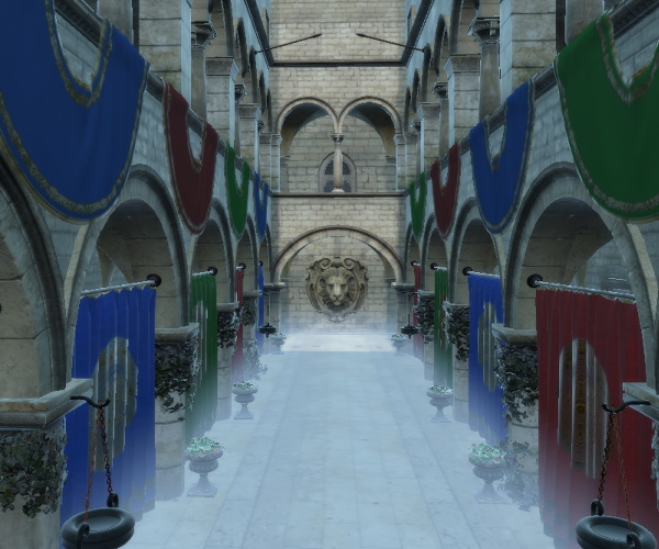 Pictured here is a scene with height fog enabled (no depth fog), and leastIntenseY set to a value so the fog is only spreading around the bottom of the Sponza scene.