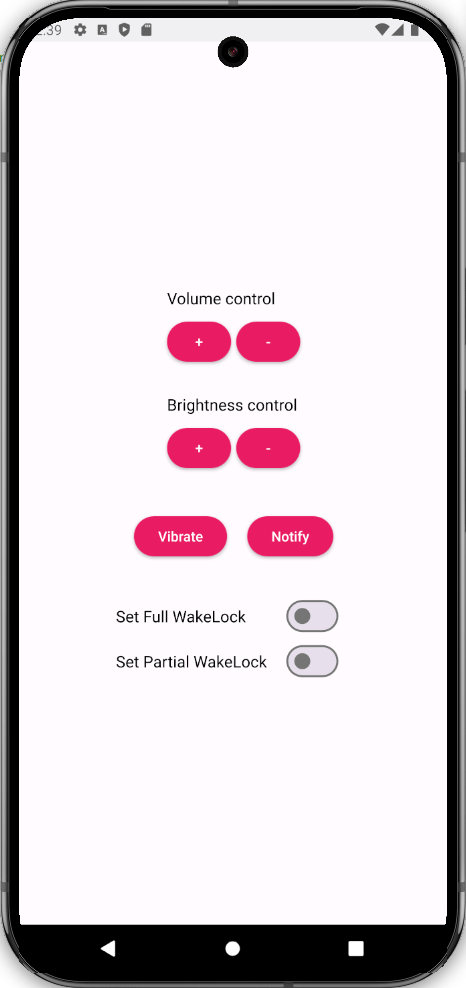 This demo showcases the use of QtJenny and uses it to generate C++ proxy classes to access Android APIs from C++ code. The generated C++ classes are used in the demo to perform actions such as adjusting the volume and brightness, activating and deactivating wake locks , sending notifications and triggering vibrations. These actions are part of Android APIs that Qt doesn't implement.