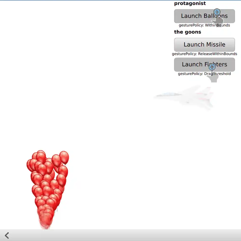 to provide feedback about what the user is doing with the pointing devices: these components are always visible throughout the example, and do not interfere with interaction anywhere else. These components are handy for reuse if you ever need to do a video or live demonstration of a user interface.