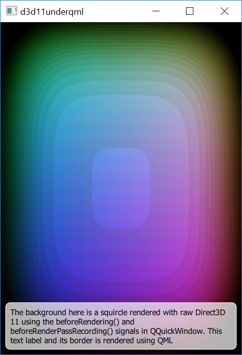 The example is equivalent in most ways to the QML 下的 OpenGL , 在 QML 下的 Metal ,和 在 QML 下的 Vulkan examples, they all render the same custom content, just via different native APIs.