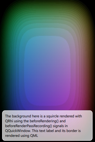 The RHI Under QML example shows how an application can make use of the QQuickWindow::beforeRendering () 和 QQuickWindow::beforeRenderPassRecording () signals to draw custom QRhi -based content under a Qt Quick scene.