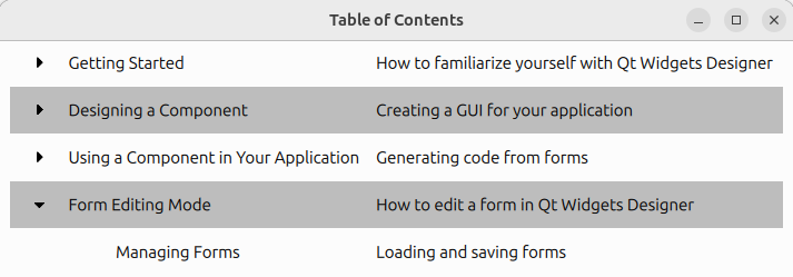 要运行范例从 Qt Creator ,打开 欢迎 模式,然后选择范例从 范例 。更多信息,见 Qt Creator:教程:构建并运行 .