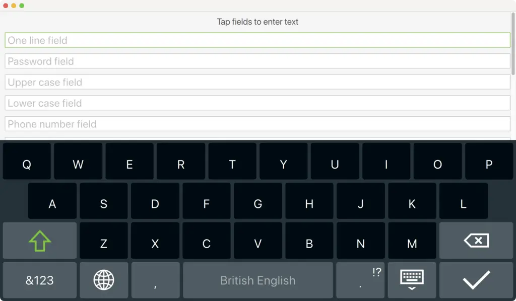 import QtQuick import QtQuick.Controls import QtQuick.VirtualKeyboard import "content" Rectangle { ... TextField { width: parent.width placeholderText: "One line field" enterKeyAction: EnterKeyAction.Next onAccepted: passwordField.focus = true } ... TextArea { id: textArea width: parent.width placeholderText: "Multiple line field" height: Math.max(206, implicitHeight) } }
