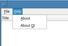 void MainWindow::createMenus() { QMenu *fileMenu = menuBar()->addMenu(tr("&File")); QAction *openAct = fileMenu->addAction(tr("&Open..."), this, &MainWindow::open); openAct->setShortcuts(QKeySequence::Open); QAction *saveAsAct = fileMenu->addAction(tr("&Save As..."), this, &MainWindow::saveAs); saveAsAct->setShortcuts(QKeySequence::SaveAs); QAction *exitAct = fileMenu->addAction(tr("E&xit"), this, &QWidget::close); exitAct->setShortcuts(QKeySequence::Quit); menuBar()->addSeparator(); QMenu *helpMenu = menuBar()->addMenu(tr("&Help")); helpMenu->addAction(tr("&About"), this, &MainWindow::about); helpMenu->addAction(tr("About &Qt"), qApp, &QApplication::aboutQt); }