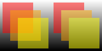 import QtQuick 2.0 Rectangle { width: 200 height: 100 gradient: Gradient { GradientStop { position: 0; color: "white" } GradientStop { position: 1; color: "black" } } Row { opacity: 0.5 Item { id: foo width: 100; height: 100 Rectangle { x: 5; y: 5; width: 60; height: 60; color: "red" } Rectangle { x: 20; y: 20; width: 60; height: 60; color: "orange" } Rectangle { x: 35; y: 35; width: 60; height: 60; color: "yellow" } } ShaderEffectSource { width: 100; height: 100 sourceItem: foo } } } |