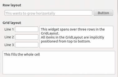 此範例展示如何輕鬆將 UI 組件排列在 layouts with GridLayout , RowLayout ,和 ColumnLayout .